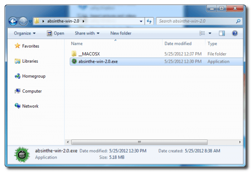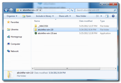 In this way a new folder absinthe-win-2.0. appears on the screen