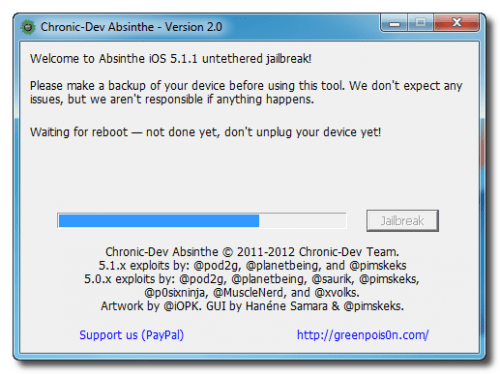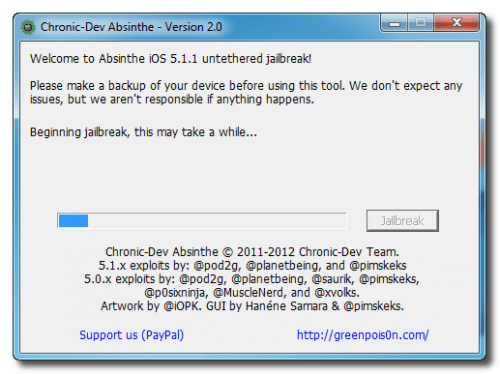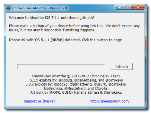 By following few simple steps defined below you can complete an iPhone 4s untethered jailbreak of iOS 5.1.1 with Absinthe for windows. It is strongly recommended to make back up for the device that is going through that process because of the possibility of losing some data / features.
