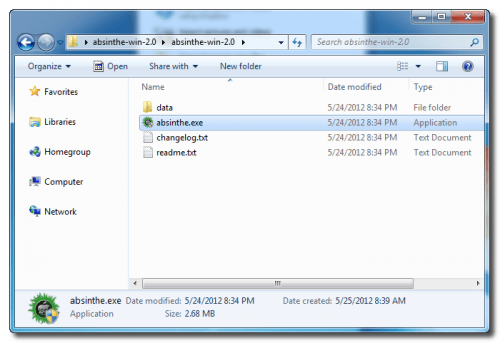 Now open this new folder to launch absinthe.exe.